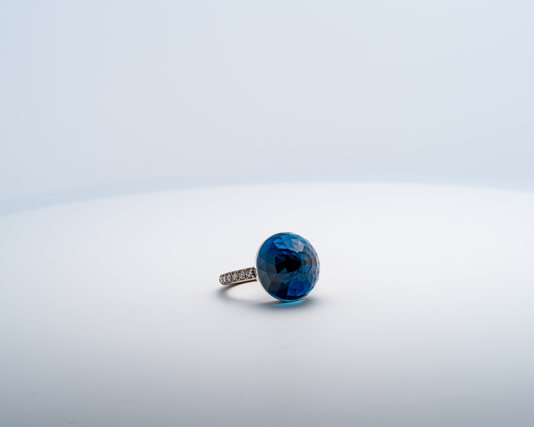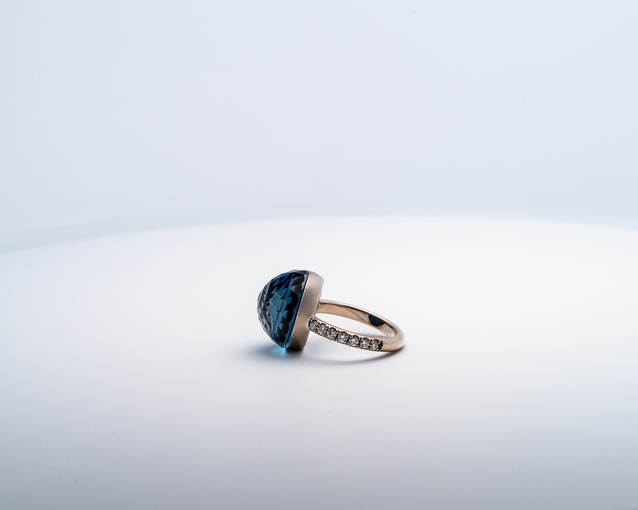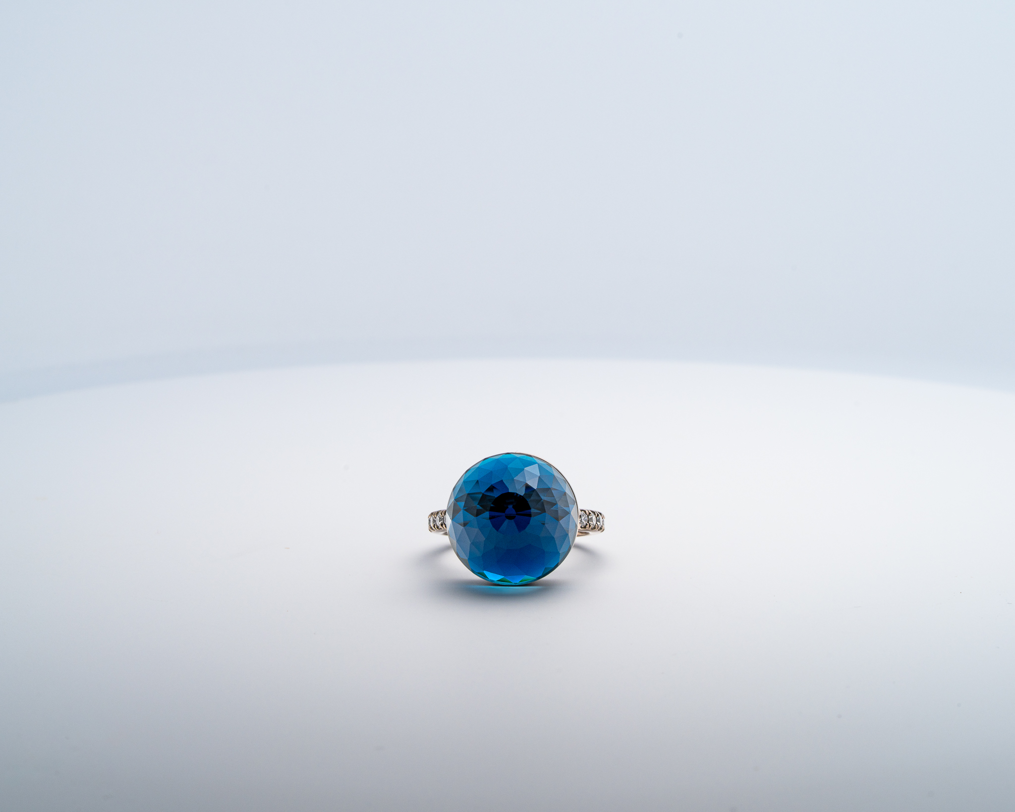 Bague Asteria à 200 Facettes en Or Blanc 18K avec Topaze Pavée de 14 diamant Diamant de 2.0 mm pour env 0.42ct