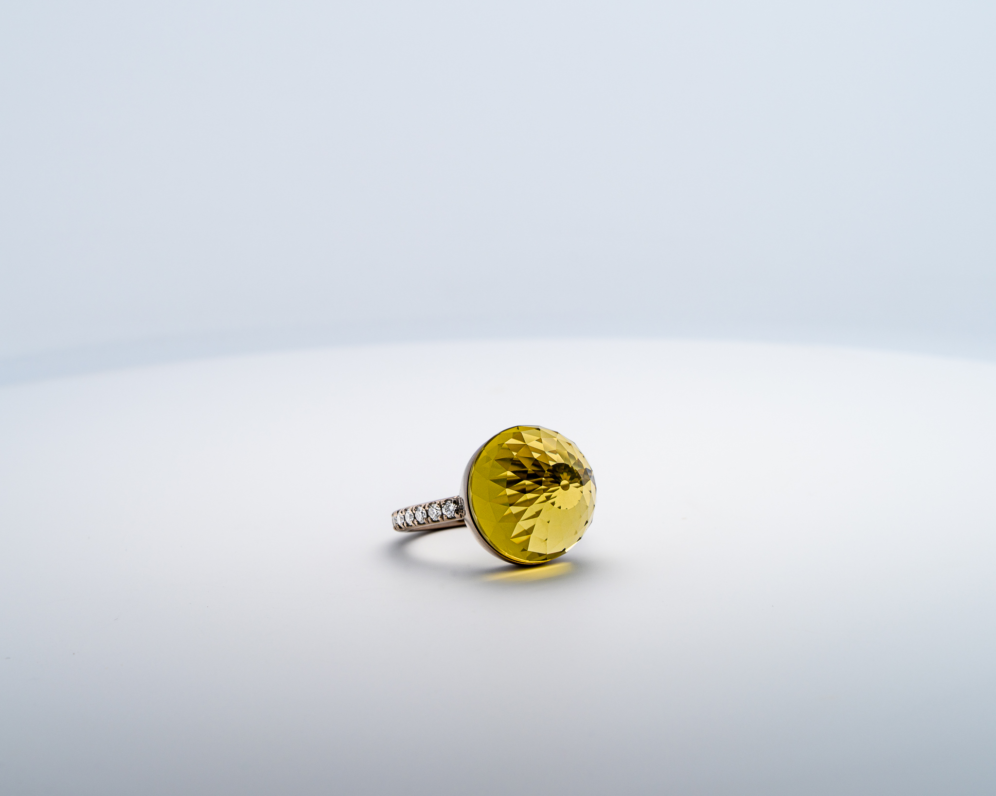 Bague Asteria Or Blanc 18K Lemon Quartz Pavée de 14 diamant Diamant de 2.0 mm pour env. 0.42ct