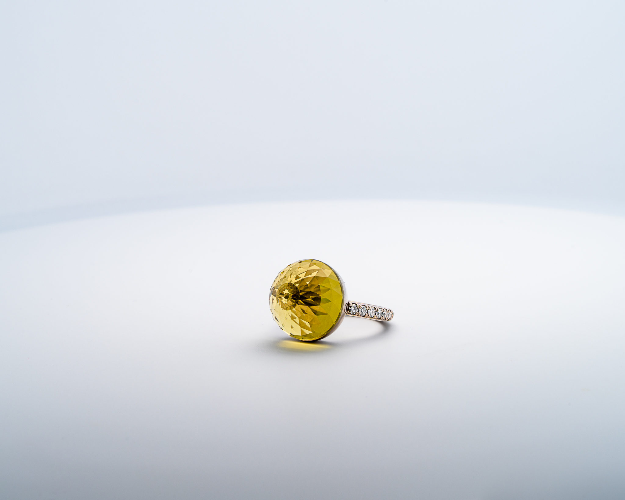 Bague Asteria à 200 Facettes en Or Blanc 18K avec Lemon Quartz Pavée de 14 diamant Diamant de 2.0 mm pour env 0.42ct