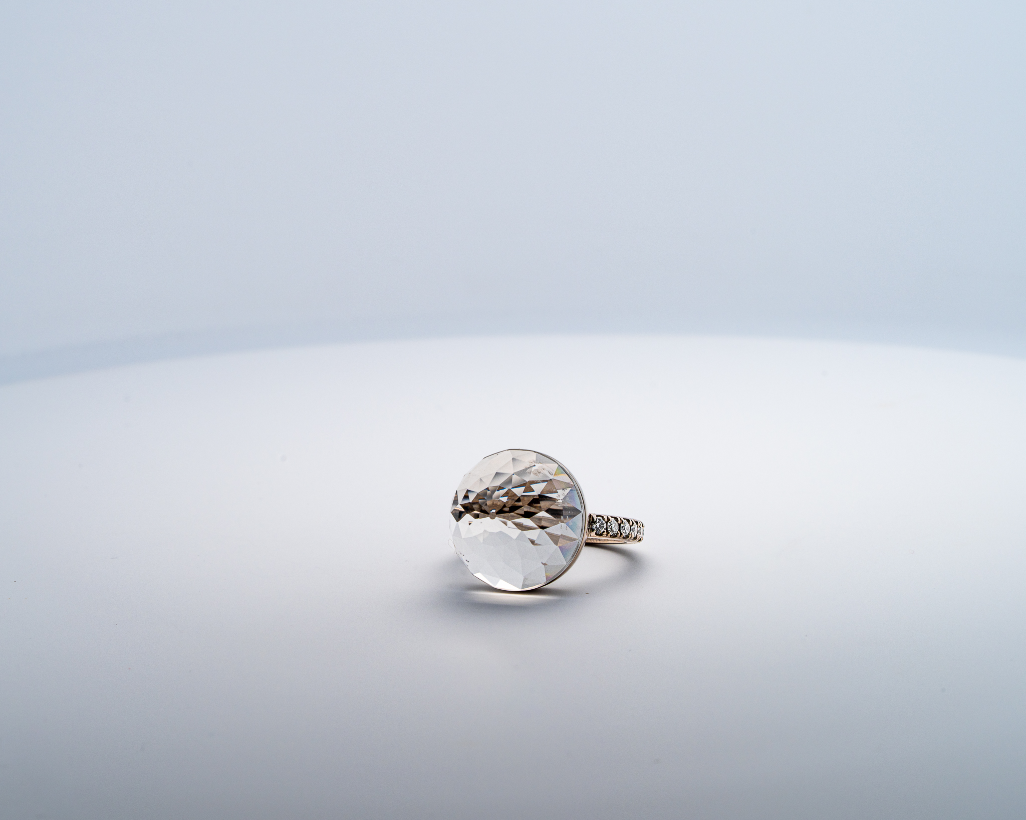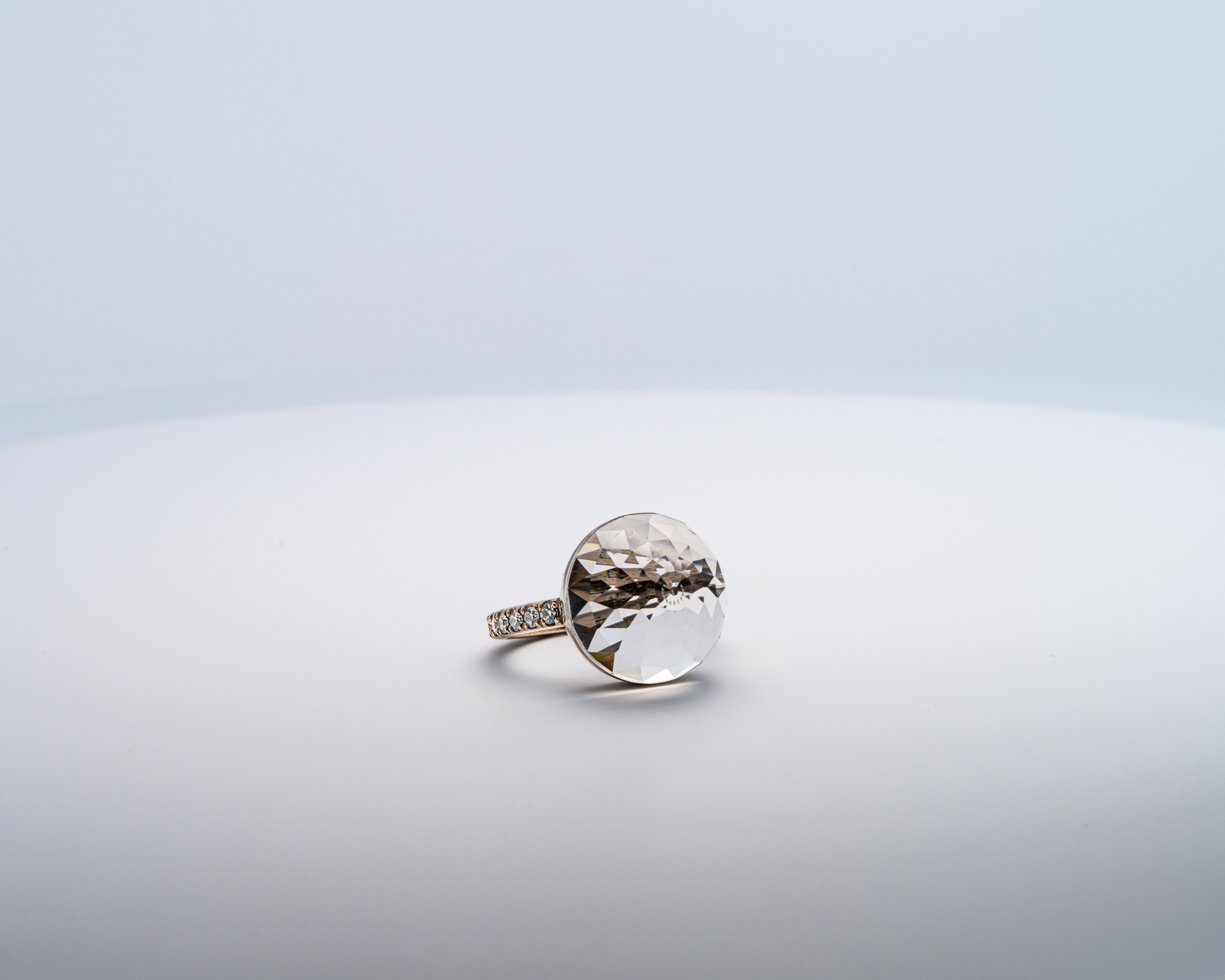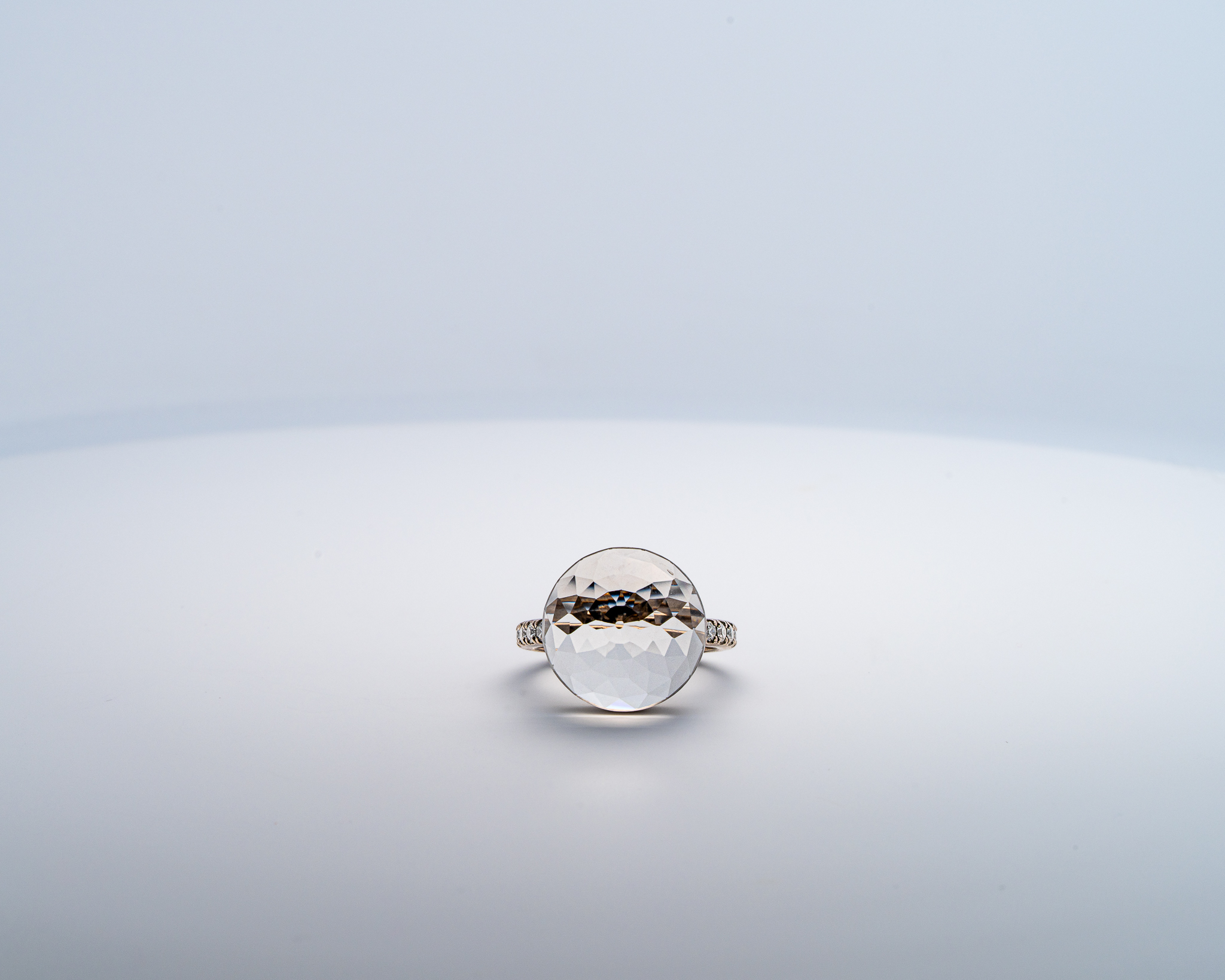 Bague Asteria à 200 Facettes en Or Blanc avec Quartz Pavée de 14 diamant Diamant de 2.0 mm pour env 0.42ct