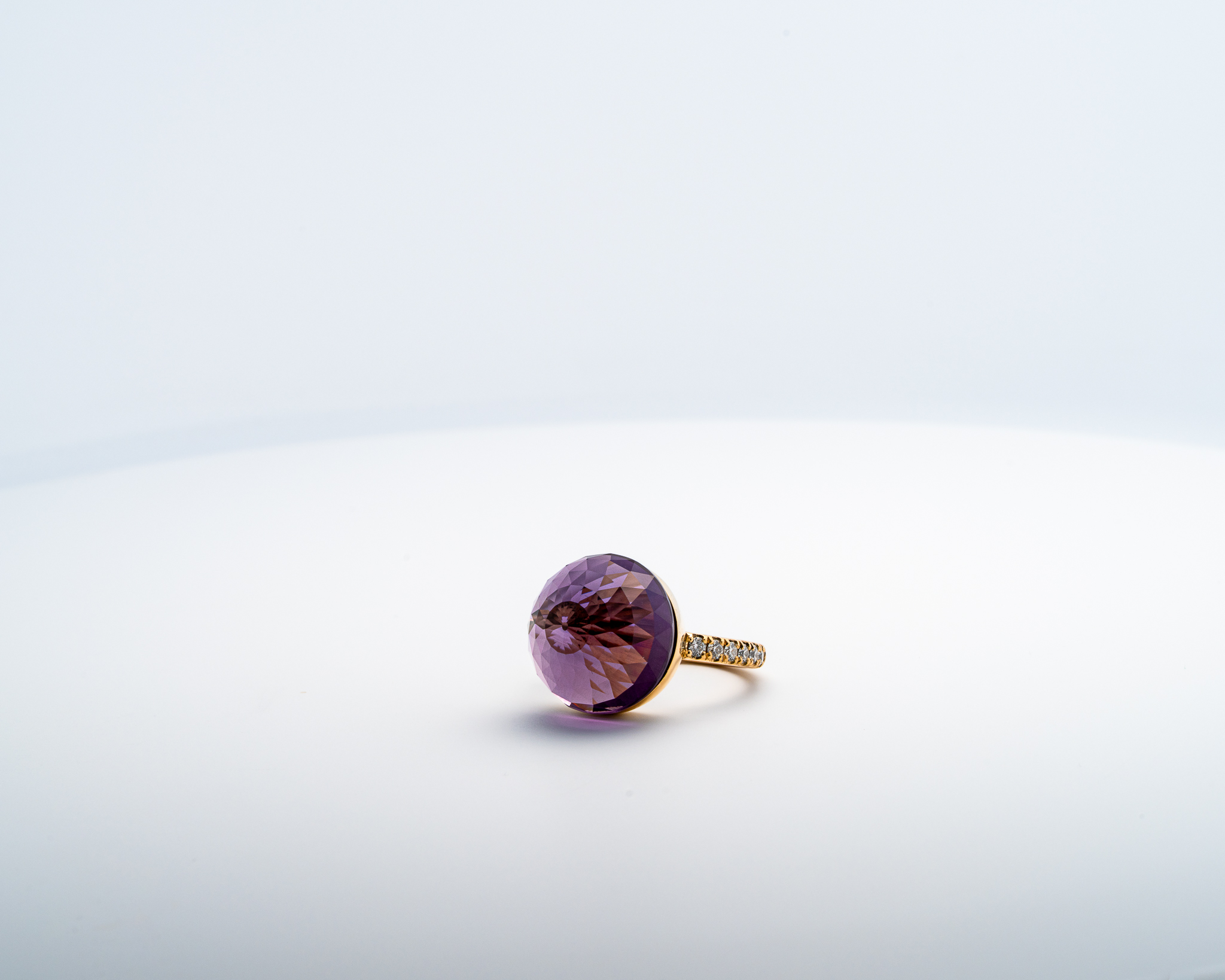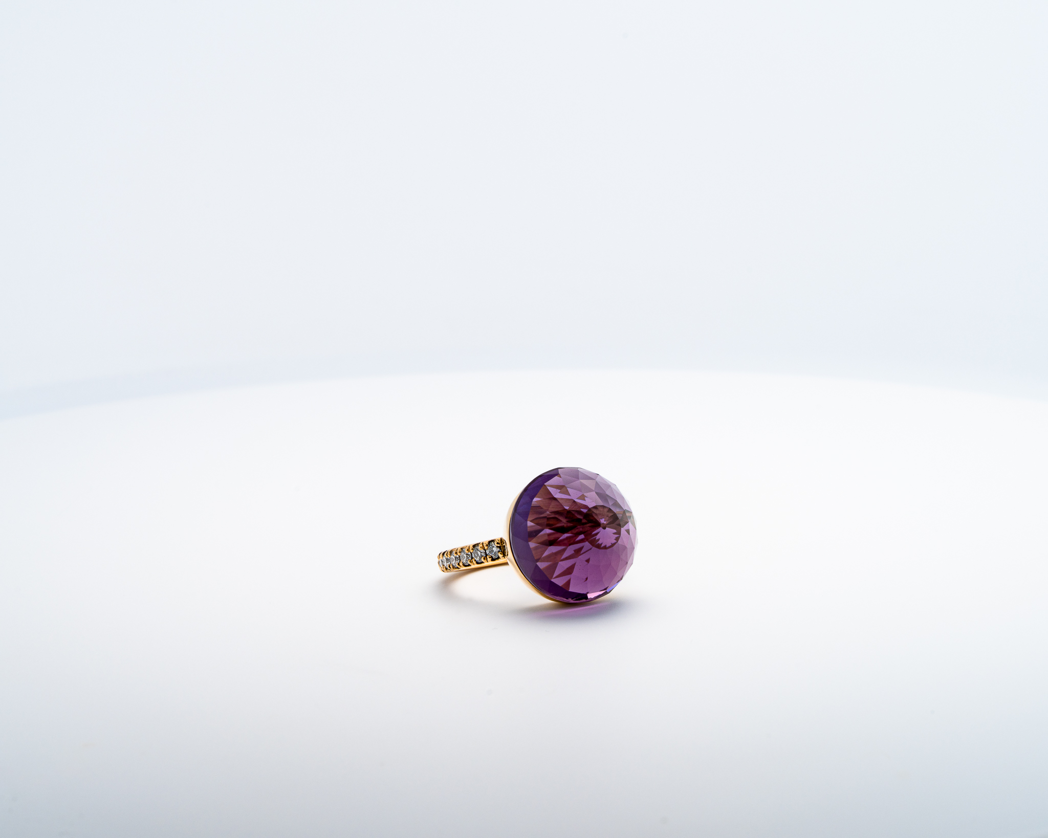 Bague Asteria à 200 Facettes en Or Jaune avec Améthyste Pavée de 14 diamant Diamant de 2.0 mm pour env 0.42ct